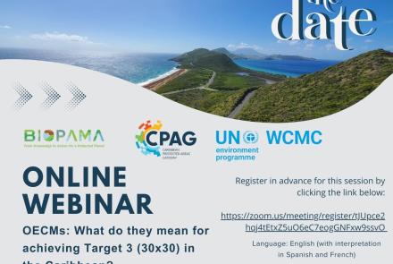 Join the Caribbean Protected Areas Gateway (CPAG), IUCN and UNEP-WCMC as we discuss Other Effective Area-Based Conservation Measures (OECMs) and what they mean for Caribbean countries in achieving Target 3 of the Kunming-Montreal Global Biodiversity Framework.